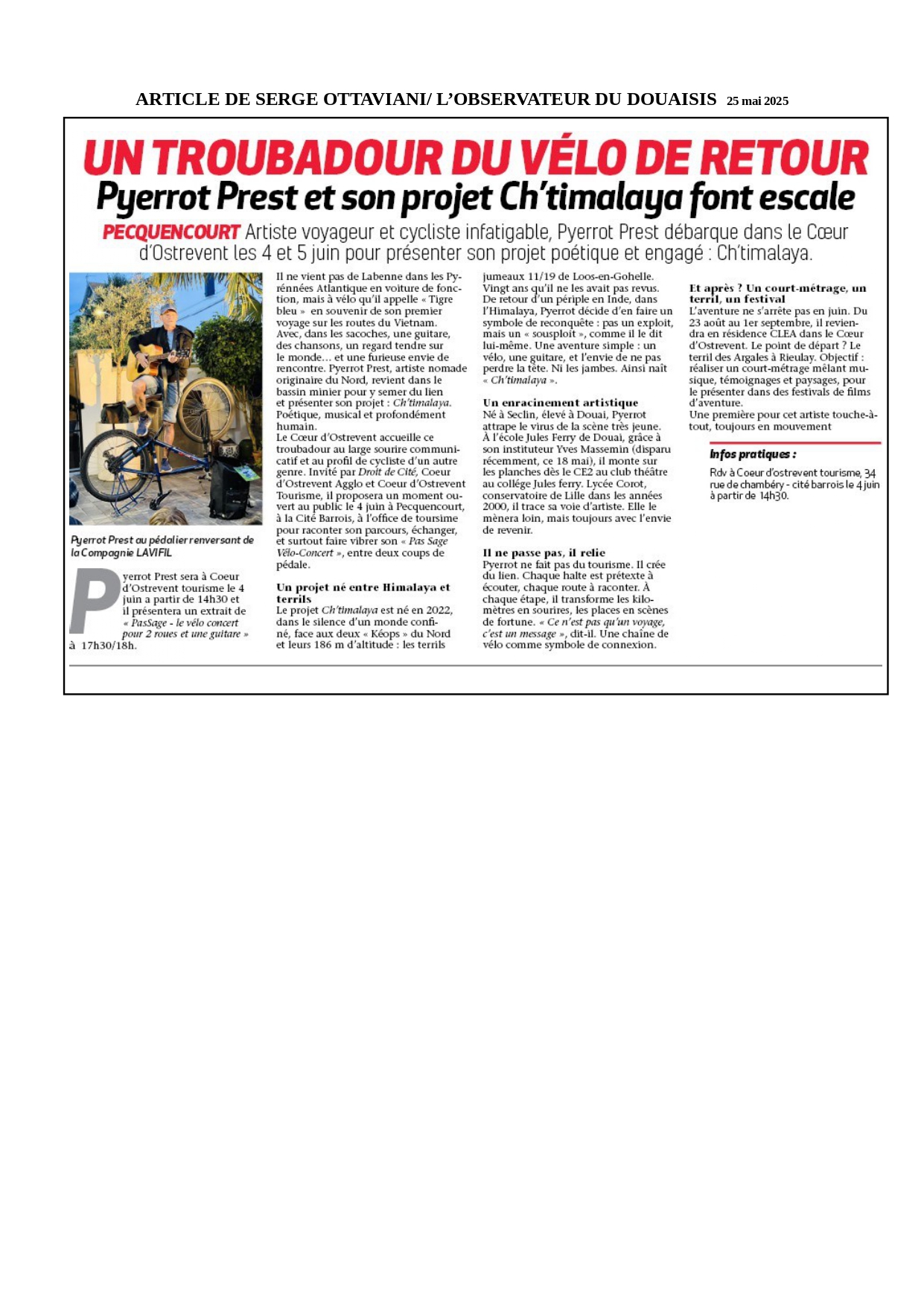 Le projet « Ch’ti Malaya », aventure en solitaire, se met en place entre bivouac, concert et rencontres. Je gravirai des sommets intérieurs et une chaîne montagneuse hors du temps, chaleureuse, en pleine mutation!